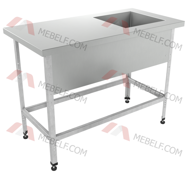 | Ванна моечная с рабочей поверхностью правая ВМРП "Бизнес" 1500х600х860, без борта |