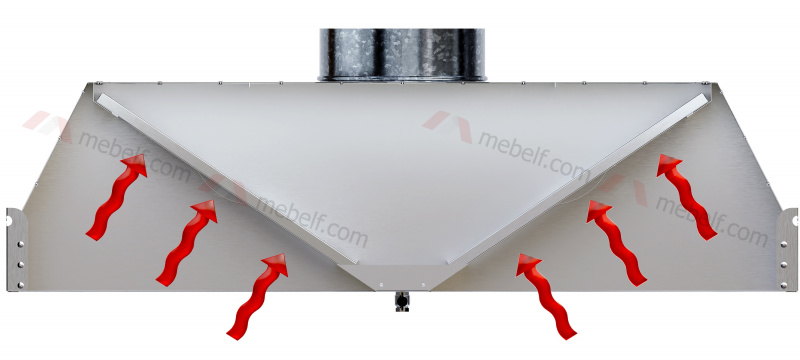 - Зонт вытяжной нержавеющий островной ЗВН04 – зонт островной выполнен из нержавеющей стали AISI430 толщиной 0,7 мм и оснащен встроенными нержавеющими жироуловителями для удаления жира. Имеет 1 врезку для оттока воздуха (размер врезки по согласованию)